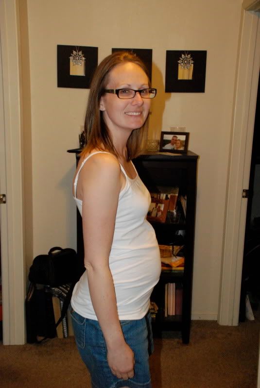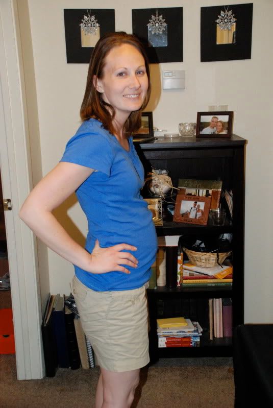 It's crazy how fast 19 weeks have gone by. Especially when I think of how just 10 short weeks ago I got to see our little baby's heart beat. I'm so excited for next week when we get to see just how much our baby has grown. Just another crazy and amazing reminder of how blessed we are. I still don't think I've felt the baby move at all though...anxious to feel it and actually know what I am feeling. The other day I was watching a movie with Ryan and felt a kind of "flutter" in my tummy and told Ryan how I thought I just felt the baby move...but since I don't really know what I'm feeling for...I'm kinda in the dark. One thing is for certain...I can no longer stand up straight and see my feet! I knew it would happen sooner or later...but it has officially happened! I now need to slightly bend over or kick my legs out in order to see my feet. But like I said, I knew it would eventually happen & I'm glad it has! :)